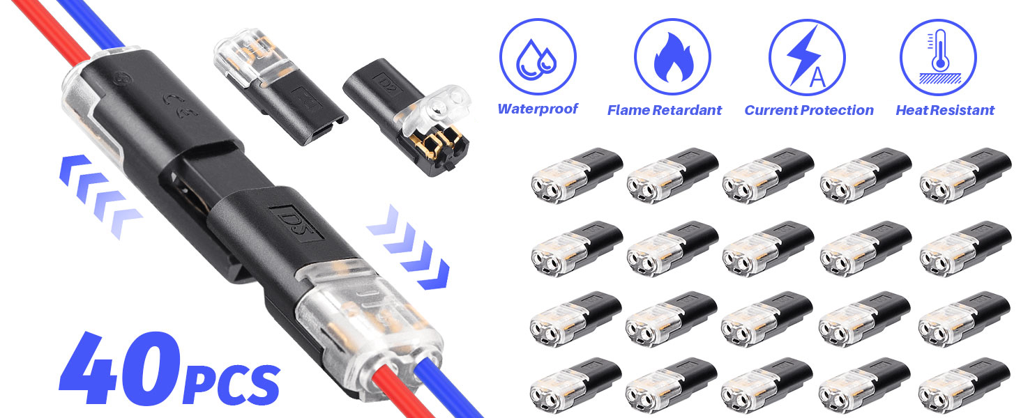 【Wide Application】Ideal for 12V/24V low-voltage scenarios: fits LED strip lights, automotive wiring, home audio/speaker installations, and small electrical devices. Perfect for both stranded/solid 18-22 AWG wires in indoor/outdoor low-loss setups.