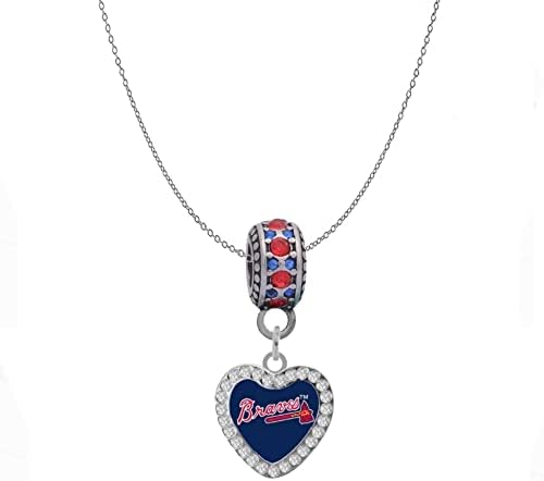 Atlanta Braves Crystal Heart Charm Compatible With Pandora Style Bracelets. Can also be worn as a necklace.
