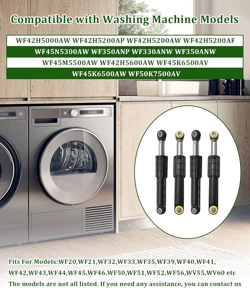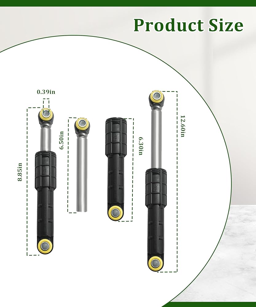 Excellent Quality:Our washer shock absorbers are made of high-quality rubber and metal materials,which provide excellent shock absorption.High durability ensures that you will still enjoy a smooth laundry experience over many uses,reducing wear and tear and extending the life of your appliance