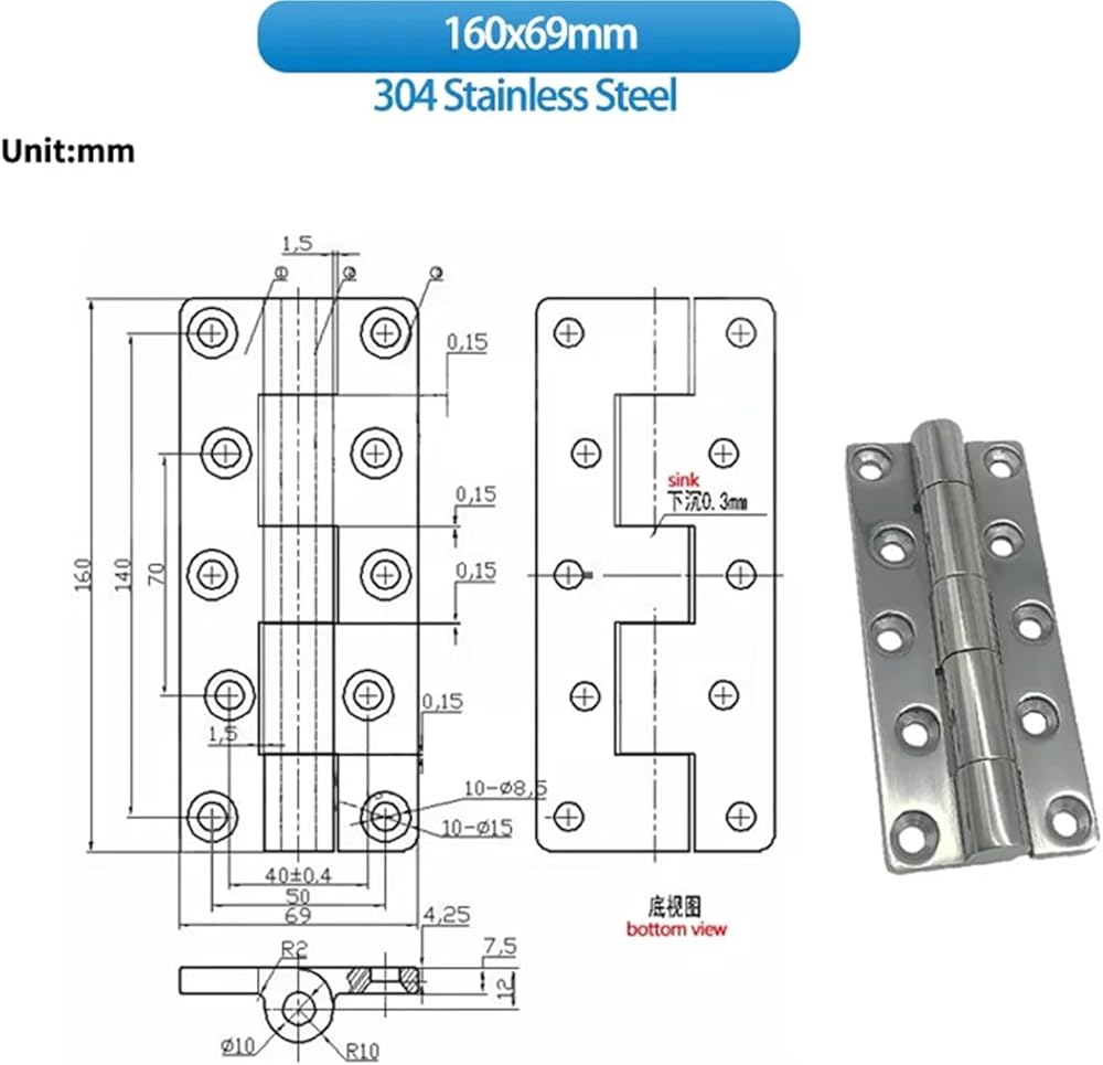 304 Stainless Steel Heavy-Duty Hinges are Used for Large Trucks and Industrial Machinery Engineering Vehicles 1Pcs