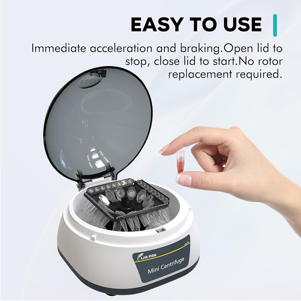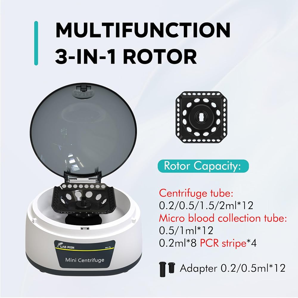 ✅【VERSATILE ROTOR】The LAB FISH microcentrifuge is equipped with a newly upgraded 2-in-1 rotor, eliminating the need for additional rotor replacements. The rotor can accommodate 12 x 0.2ml/0.5ml/1.5ml/ 2ml microcentrifuge tubes.