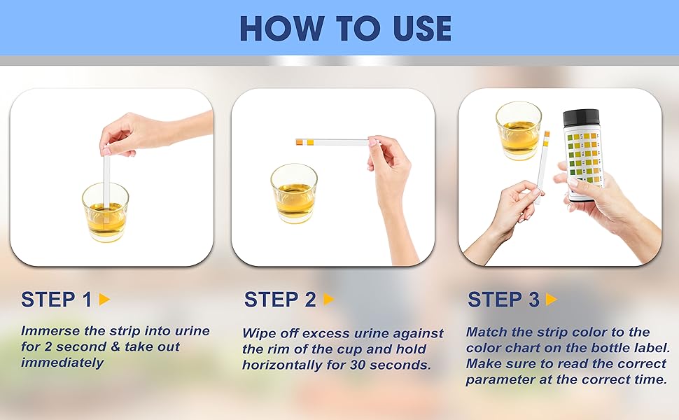 User-Friendly Design: Individual test strips are easy to handle; simply dip into urine sample and compare with the provided color chart for instant readings.