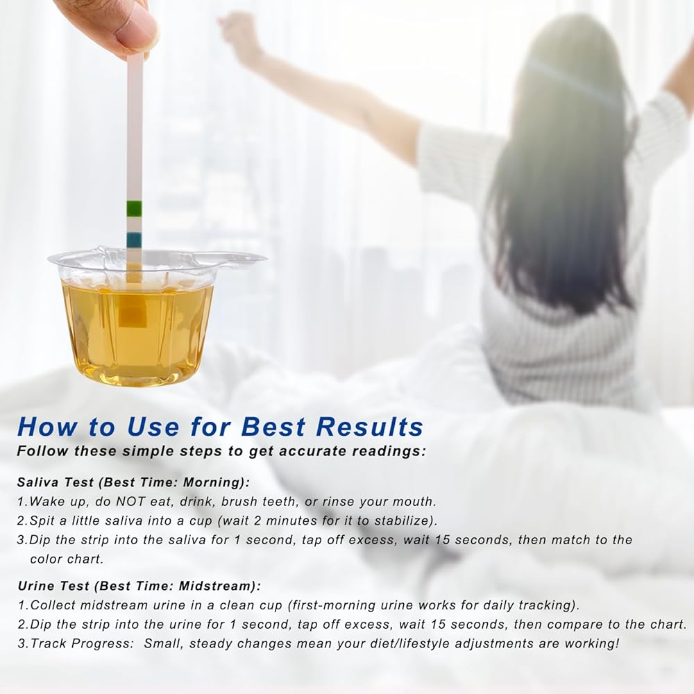 【Simple 3-Step Testing】 – We've included 100 single-use urine collection cups (one for each pH testing strip), so you're all set to start testing immediately! Just follow these steps: Step 1: Use the prepped collection cup to gather a small amount of urine specimen or saliva sample. Step 2: Dip the pH test strip into the sample for 1-2 seconds. Step 3: Match the strip to the color chart after 15 seconds. No need to clean used cups—this process is extremely straightforward!