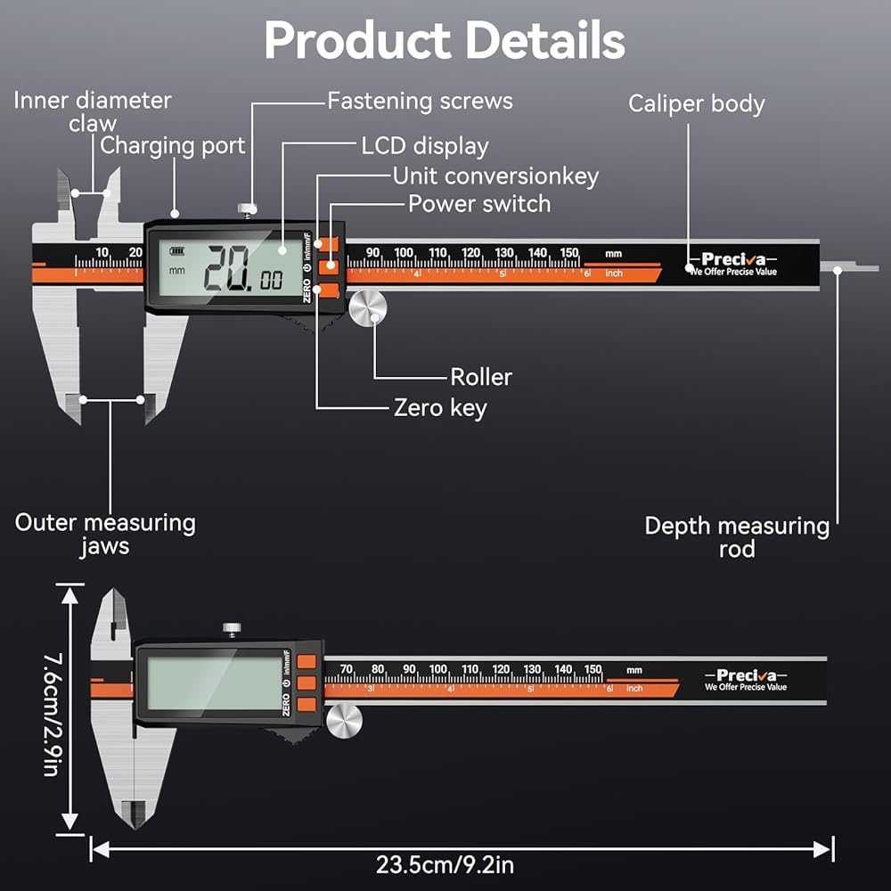 STAINLESS STEEL CONSTRUCTION: The vernier caliper is made of high-strength stainless steel and is waterproof and dirt-proof. Provides durability and maintains accuracy longer than plastic-component calipers.