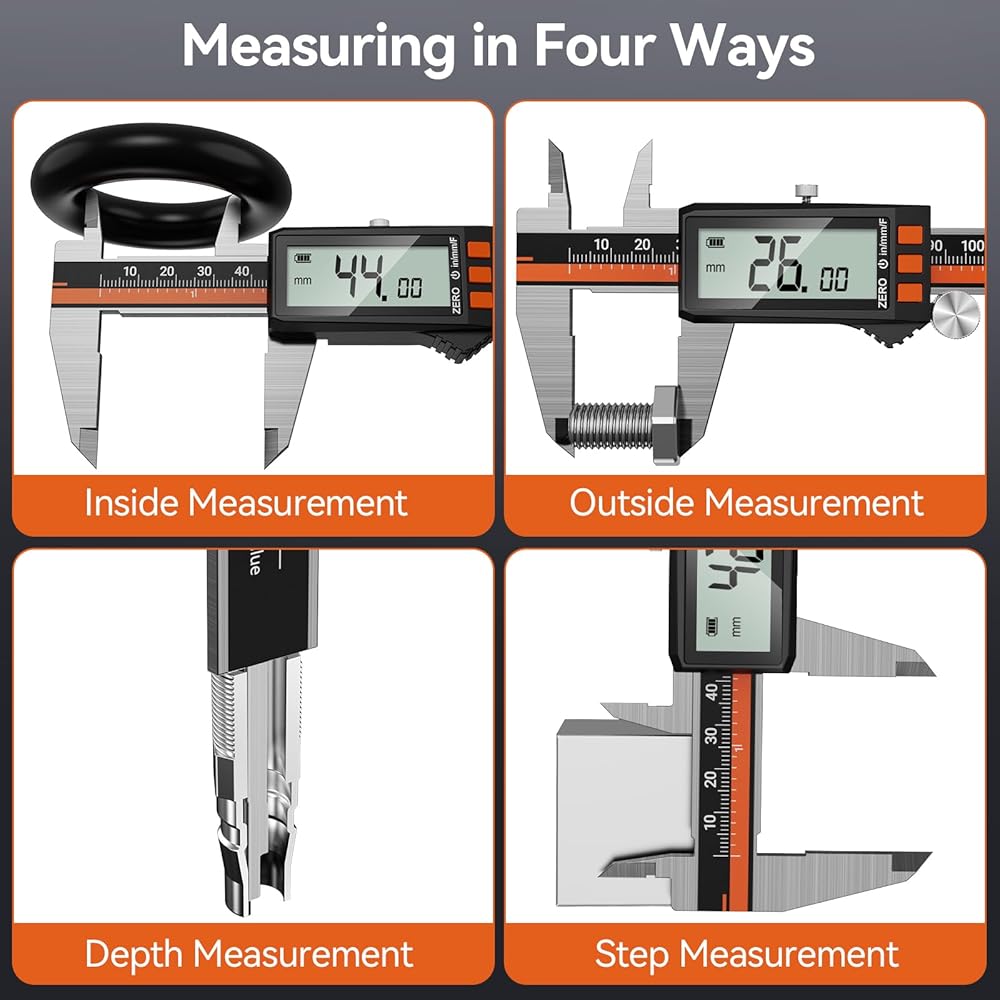 LARGE LCD DISPLAY & AUTO OFF: Digital calipers feature a large LCD display that is easy to read. It automatically powers off after 5 minutes of inactivity to save power.