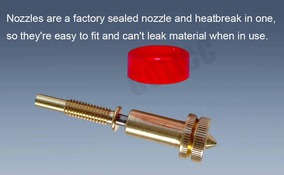 Precision Engineering with Leak-Proof Design The integrated design of the nozzle and throat eliminates any possibility of material leakage. Each GOLICC Rapid Change Revo Brass Nozzle comes pre-assembled, removing the risks associated with dangerous heat tightening and eliminating any chance of misassembly. Enjoy peace of mind with every print job.