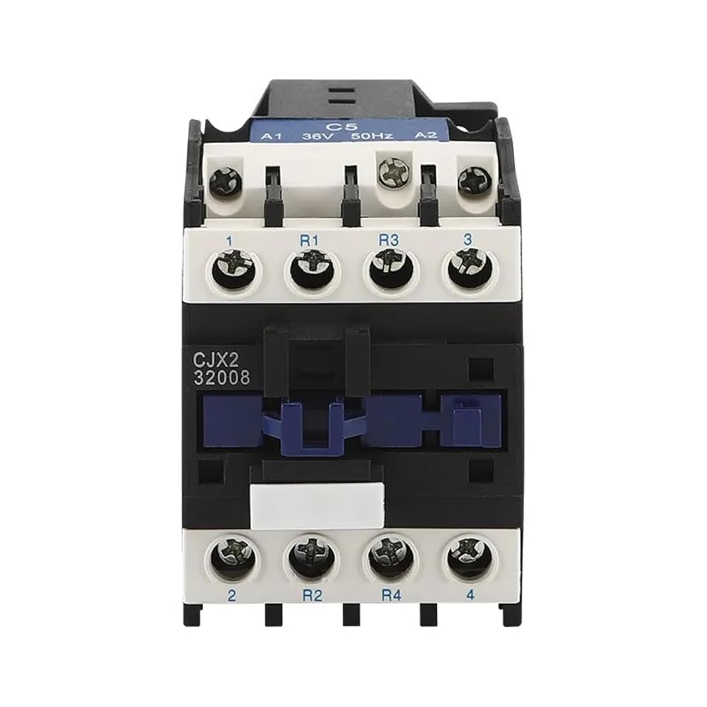 The CJX2-32008 AC contactor is a robust four-pole electrical switching device designed for industrial control applications. This 32-amp rated contactor features a versatile 2NO+2NC contact configuration with premium silver alloy contact points for superior conductivity and minimal contact resistance. The compact design efficiently utilizes panel space while maintaining high performance capabilities. Operating on low voltage AC power, this contactor is ideal for motor control, power distribution, and automation systems. The durable construction ensures reliable operation in demanding industrial environments, while the standardized mounting makes installation straightforward. The device's four-pole architecture provides comprehensive circuit control, making it suitable for applications requiring independent control of multiple circuits. Whether used in manufacturing equipment, HVAC systems, or power distribution panels, this contactor delivers consistent switching performance and reliable operation. The CJX2-32008 maintains compatibility with standard industrial control systems and can be easily integrated into new or existing electrical installations.