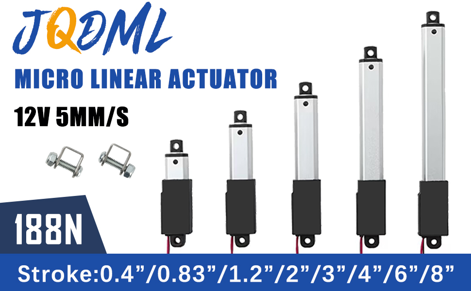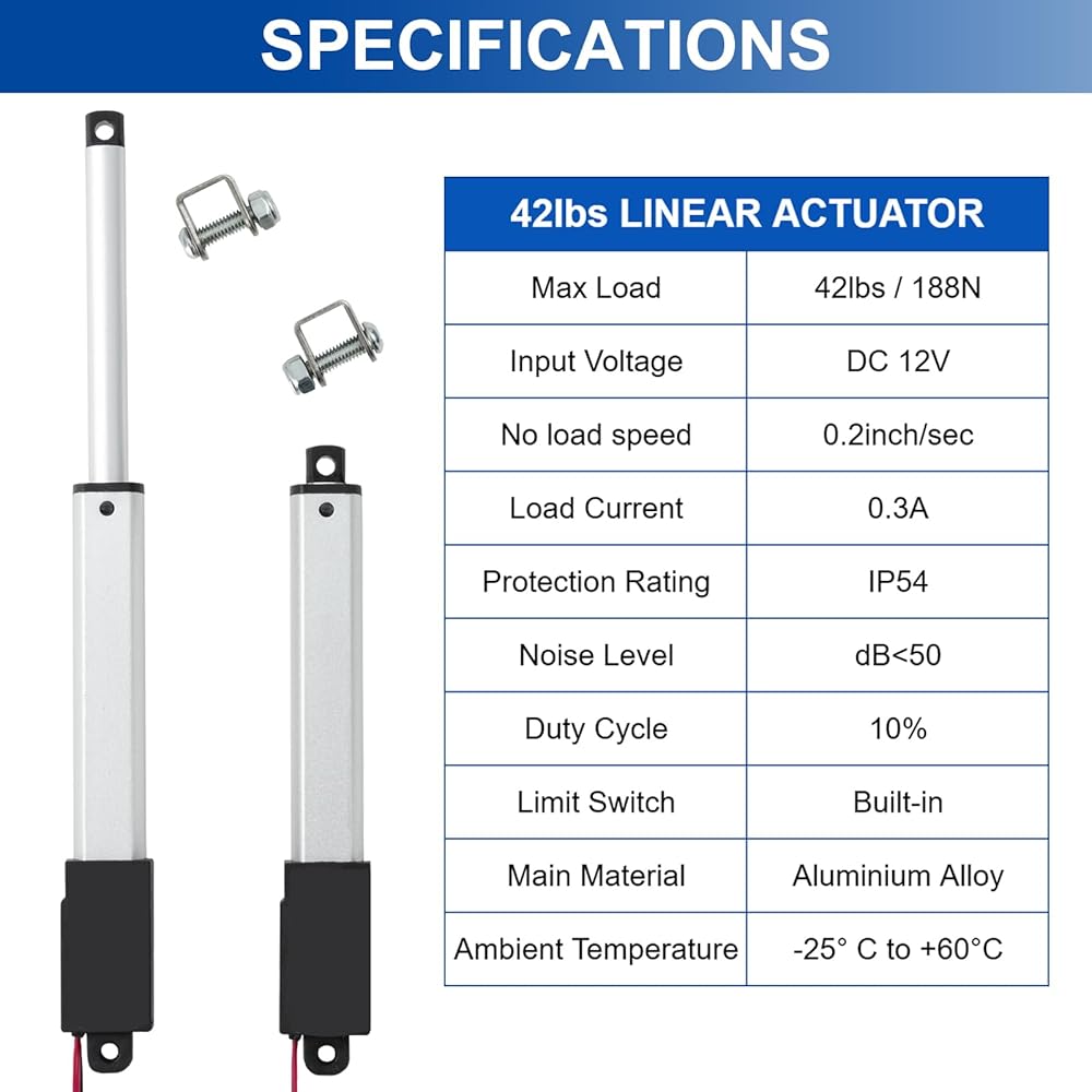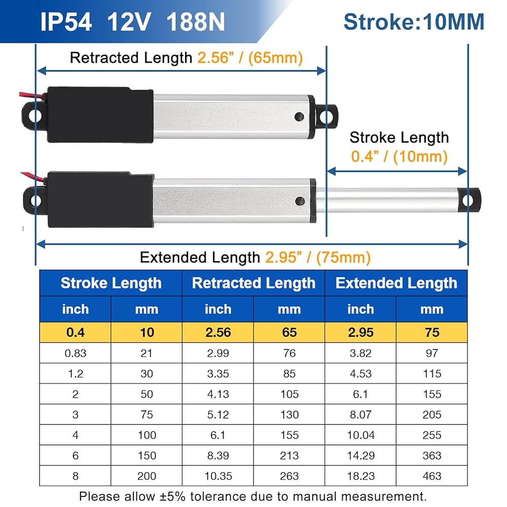 12V Mini Linear Actuator - 0.4 Inch Stroke, 42lbs/188N, 0.2"/s Speed, IP54 Electric Micro Linear Actuator with Mounting Brackets, Lightweight 0.082lbs, for Cabinets, Robotics, Home Automation