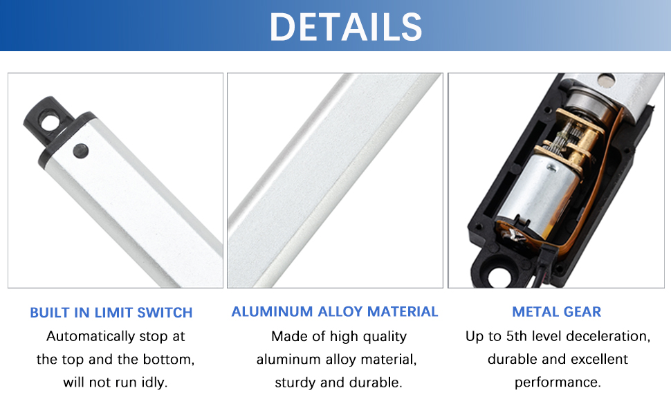 Durable & Robust Material:Constructed with an aluminum alloy telescopic rod and housing, this actuator features reliable rust resistance. Powder metallurgy metal gears boost enhanced durability for long-term use.