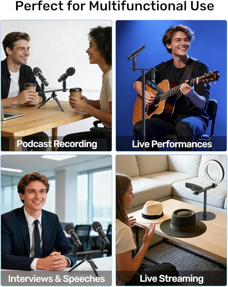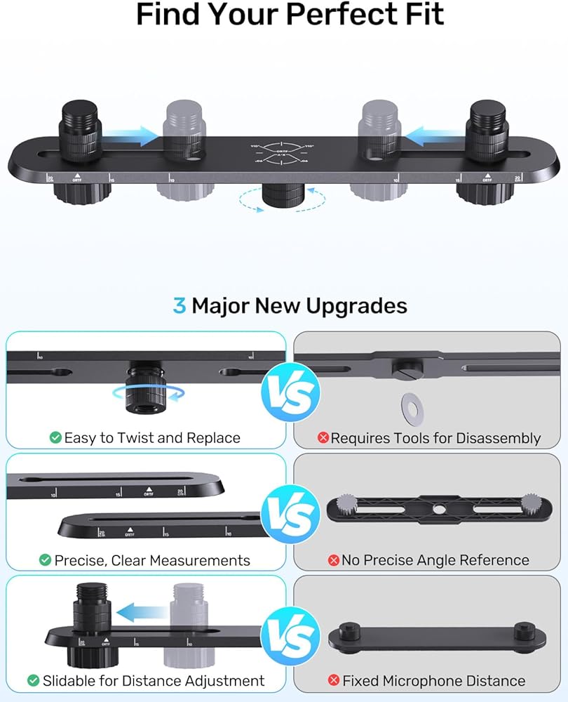 【Maximize Your Space with Dual Mic Configuration】This robust stereo mic bar allows you to configure a dual microphone setup on a single stand, effectively freeing up over 50% more space than using individual mounts. It's the perfect space-saving solution for home studios, podcast setups, and live sound applications, giving you a cleaner workspace and more flexibility to perfect your audio production. This double mic holder is ideal for maximizing efficiency in any recording environment.