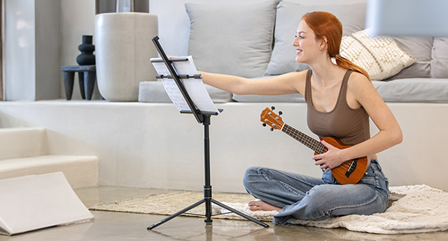 Adaptable Elevation:The KraftGeek folding music stand is ideal for playing various instruments,including guitar, violin, and flute; With a height range from 29 to 66 inches, it provides customizable comfort whether you're sitting, standing, or playing on the sofa