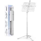 Expandable Music Tray with Clips: The collapsible music stand features an expandable music tray that effortlessly accommodates A4 to A3 music sheets; With a built-in transparent clip, our music stand keeps your sheets open and visible, offering clarity for an uninterrupted musical flow