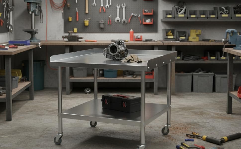 Spacious Prep & Organizing Space – The 24” x 24” top shelf provides ample room for food preparation, while the lower shelf keeps ingredients, tools, and sanitizing supplies within easy reach—perfect for keeping your workspace tidy.