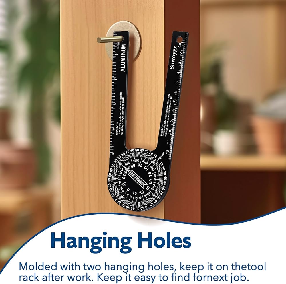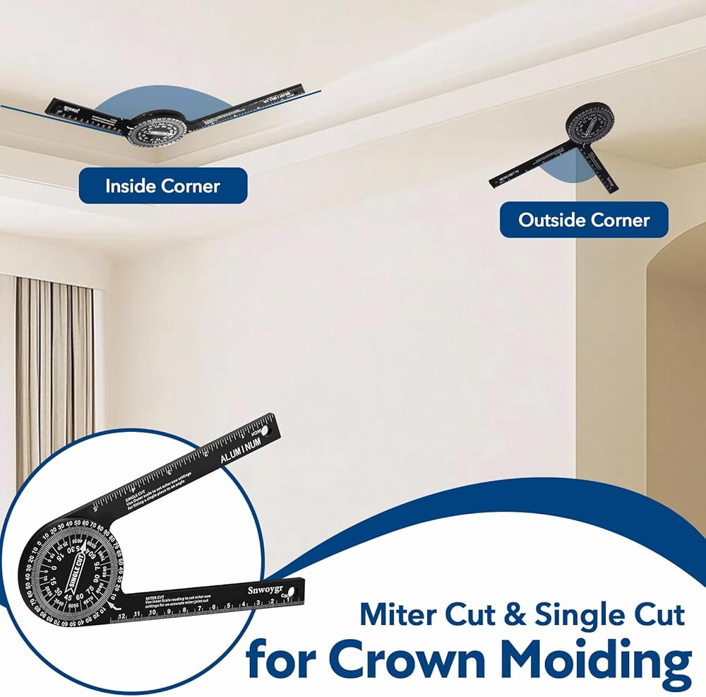 Ergonomic O-Shape Design: Featuring a precision O-shaped frame that sits flush against surfaces for enhanced stability, delivering accurate inside and outside angle measurements with an accuracy within approximately 0.5 degree. Provides wobble-free and reliable results for miter saw setups or crown molding cuts, eliminating guesswork