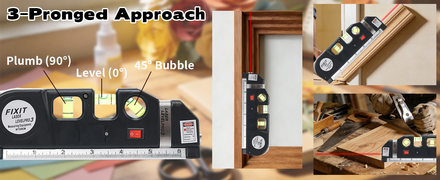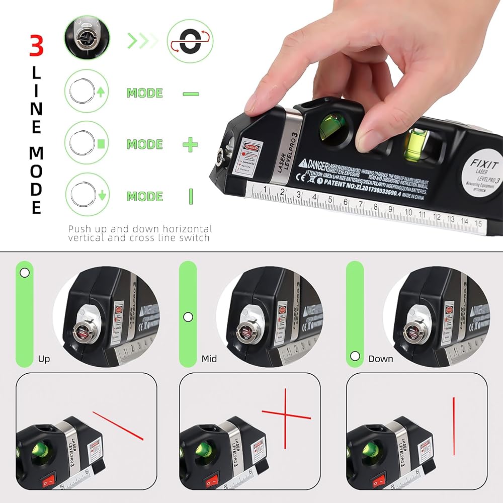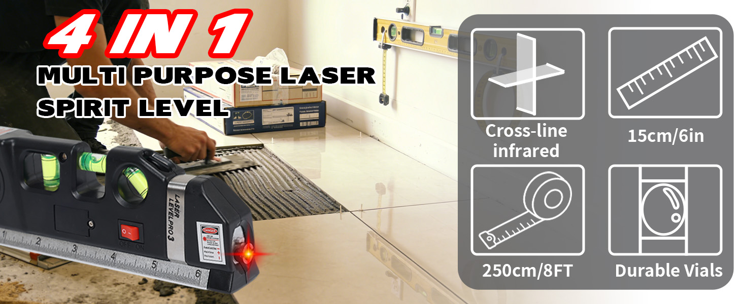 【Multifunction Laser Level】 Home Renovation: Laying tiles, installing cabinets, mounting ceiling lights—ensures walls and cabinets are perfectly level and plumb. Daily Arrangements: Hanging decorative art, installing shelves, creating photo walls—Laser level line tool effortlessly achieves level alignment.ultifunction