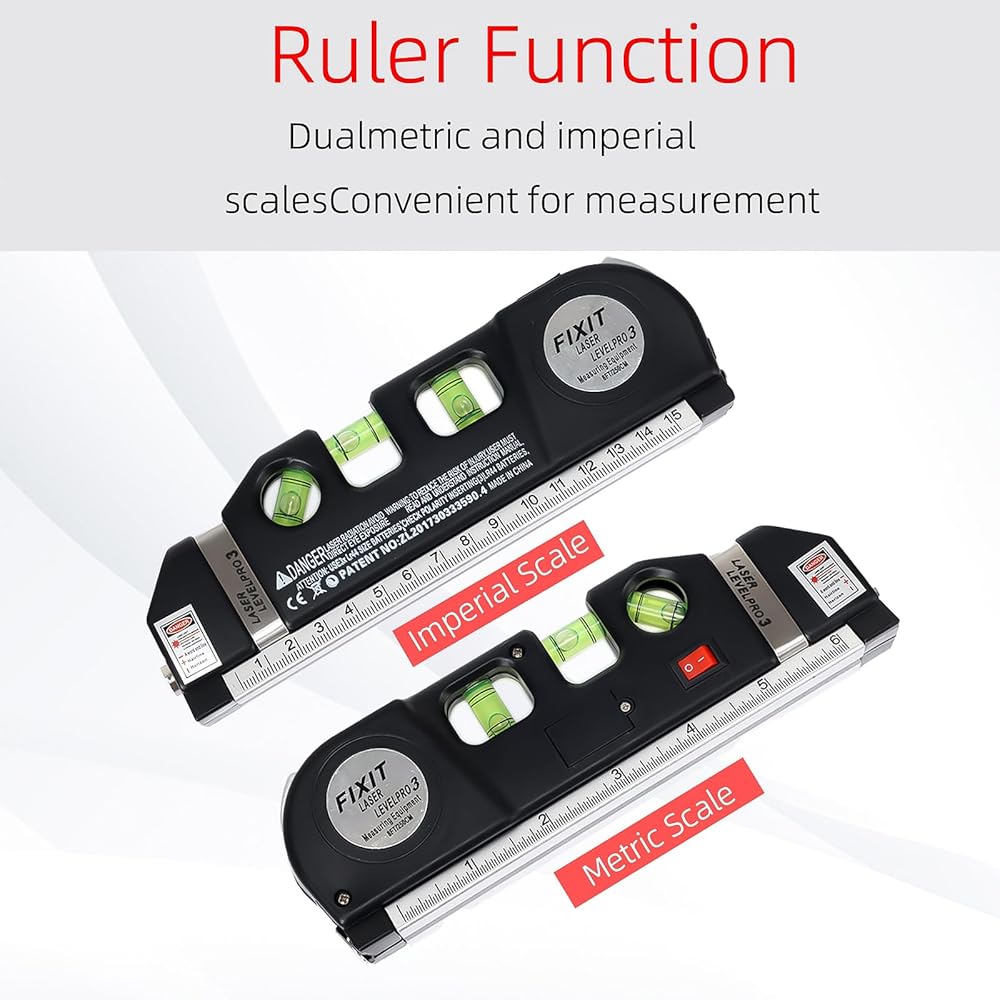 【8-Feet Tape Measure】No need to carry a separate tape measure! This laser level line tool features an integrated 8-feet (approx. 2.4 meters) measuring tape with dual-scale markings in both imperial (minimum division: 1/32 inch) and metric (minimum division: 1mm) units. Measure dimensions and verify distances in one seamless step.
