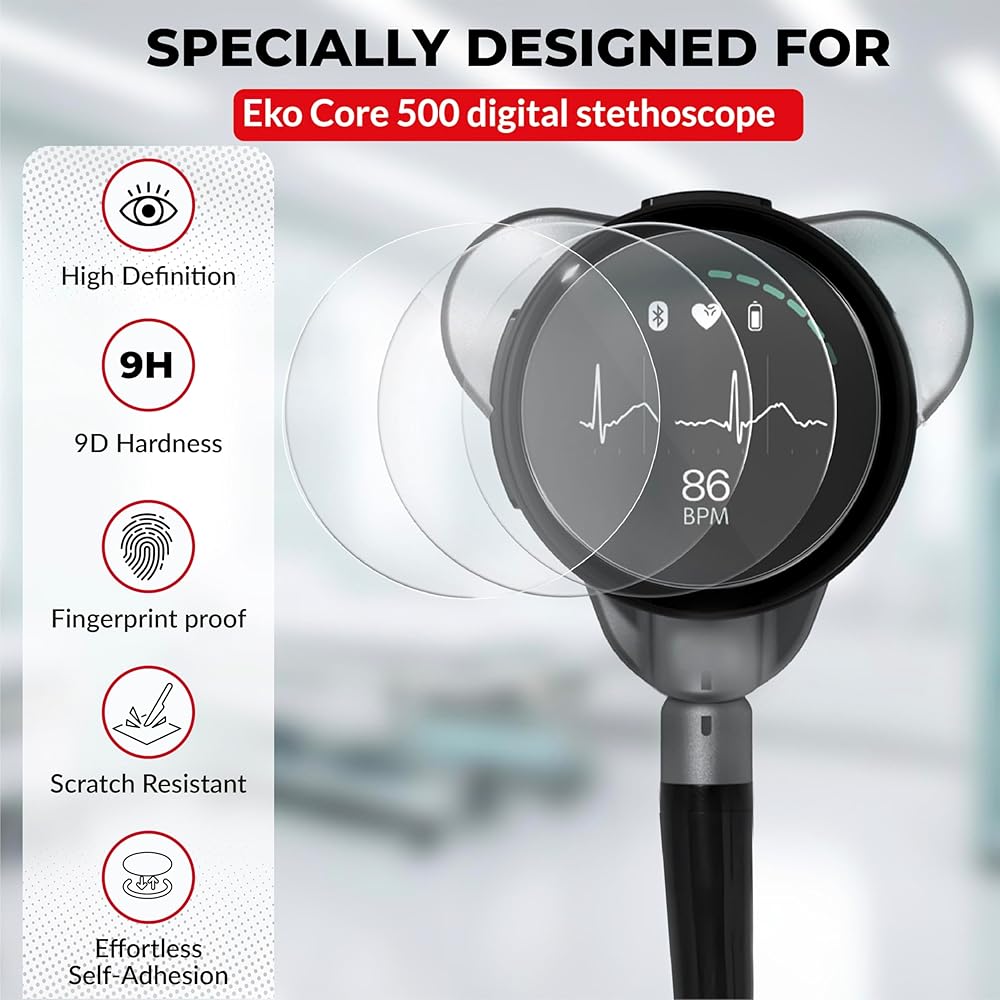 Protect your investment with the ultimate screen protection solution designed specifically for the Eko Core 500 Digital Stethoscope. This 3-pack of tempered glass screen protectors offers superior scratch resistance, crystal-clear display quality, and fingerprint resistance—essential for healthcare professionals using their device in fast-paced clinical settings. Crafted from premium 9H hardness tempered glass, each protector defends your screen from drops, scratches, and daily wear, while maintaining true-touch sensitivity for full digital functionality. The anti-bubble adhesive and precision cut ensure a seamless, frustration-free installation with zero residue. This set is part of the MotivatEM Stethoscope Replacement Parts collection, designed for healthcare providers who value both performance and affordability. While this screen protector is engineered specifically for the Eko Core 500, our broader replacement line is compatible with Littmann Classic III, Cardiology III, and Cardiology IV models, helping you extend the life of your equipment without overspending. Disclaimer: MotivatEM is an independent brand and is not affiliated with, endorsed by, or sponsored by 3M, Littmann, or Eko. These replacement parts are not OEM products and are not covered under any 3M, Littmann, or Eko manufacturer warranty. Brand names and model references are used strictly to indicate compatibility. Materials may differ from original components, and identical performance cannot be guaranteed. Packaging may vary. ✅ 3 premium protectors per pack ✅ Shatter-resistant tempered glass ✅ Bubble-free install with perfect fit ✅ Engineered for the Eko Core 500 ✅ Backed by MotivatEM's commitment to medical professionals Whether in the ER, ICU, or clinic, this screen protector is your first line of defense—because every detail matters.