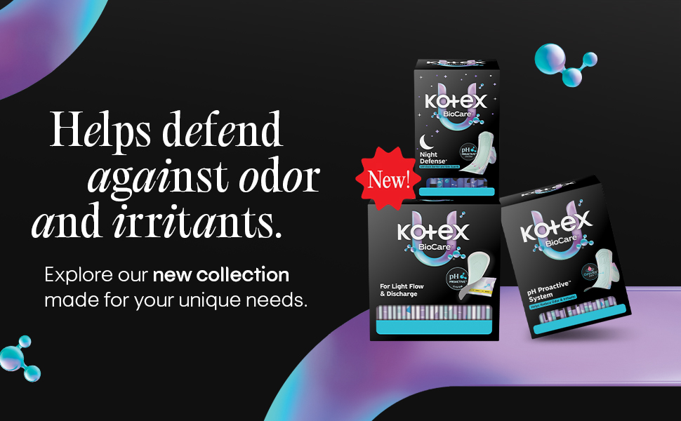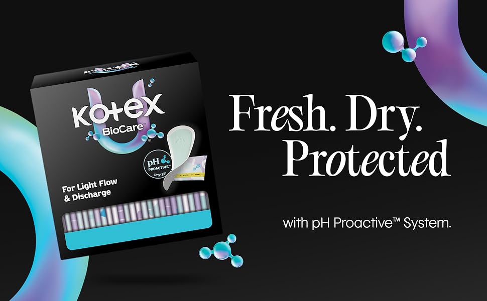 Period care is self care, and the new Kotex BioCare Daily Liners are here to provide that for your period routine. Designed with a pH Proactive System, these pantiliners help defend against odor and irritants.* To best protect against light flow and discharge, our daily liners are made with an Xpress Dri Core to absorb light flow instantly. Each pantiliner is made with your skin health in mind, which is why these feminine liners are made without fragrance and free of elemental chlorine. Each panty liner for women comes individually folded and wrapped to protect your pantiliner with easy access, even on-the-go. Kotex feminine products are FSA/HSA/HRA-eligible in the US. Packaging may vary from images shown. (*from period blood)
