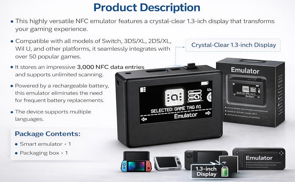 High Compatibility for Multiple Consoles: Our NFC emulator works seamlessly with Switch 1 & 2, Switch OLED, Switch Lite, 3DS/XL, 2DS/XL, and Wii U. Support 50+ popular games, including Legend of Zelda and Animal Crossing series, making it a versatile NFC solution for gaming enthusiasts.