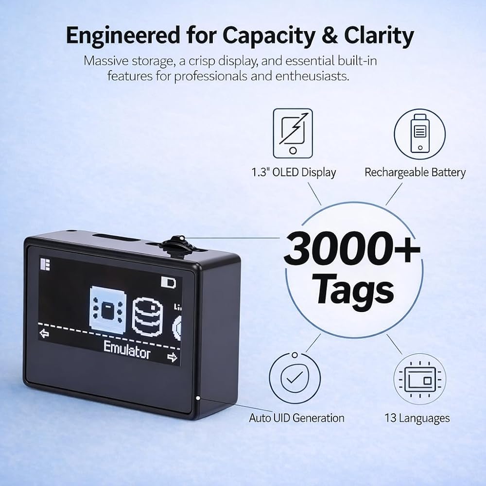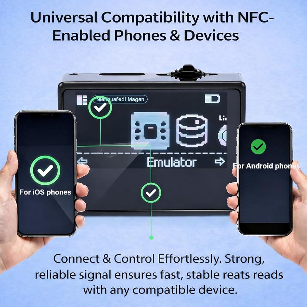 Standalone Operation with OLED Screen: Our NFC emulator equipped with a 1.3" OLED display and built-in control system. Operate directly on the device without connecting to a phone or computer.