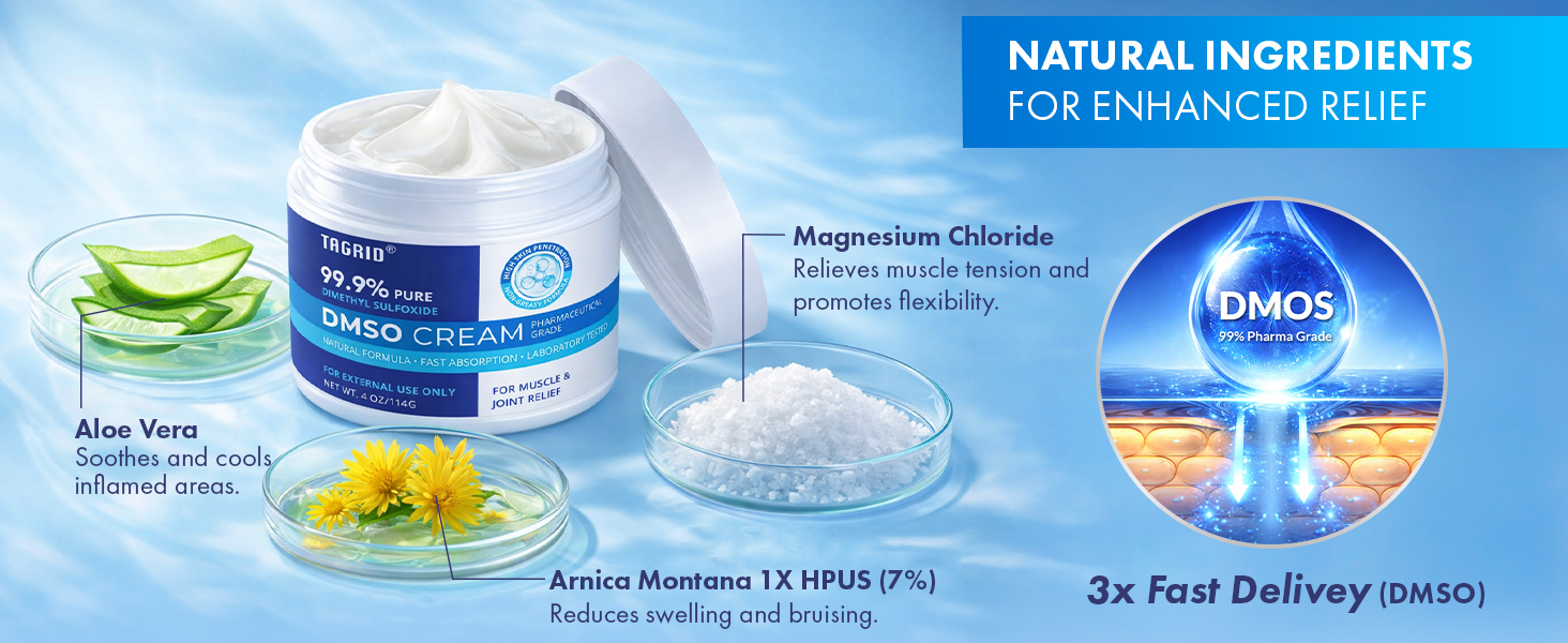 ⚡ 【FAST-ACTING & DEEP】| High Skin Penetration Technology: Don't let heavy gels slow you down. Our DMSO cream features a high-penetration formula that absorbs quickly and effortlessly into the skin. It's specially designed to deliver its active ingredients deep where they are needed most, supporting your body's natural vitality.