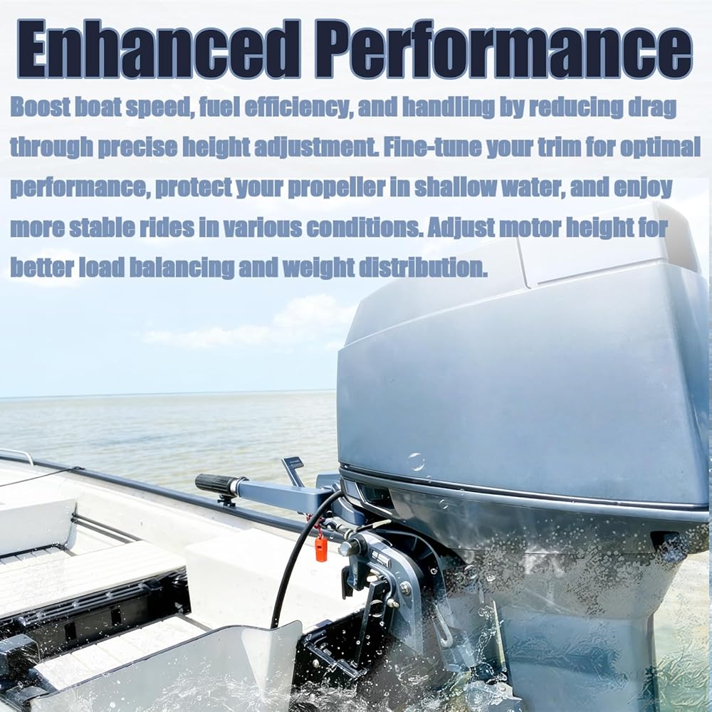 Enhanced Performance: Boost boat speed, fuel efficiency, and handling by reducing drag through precise height adjustment. Fine-tune your trim for optimal performance, protect your propeller in shallow water, and enjoy more stable rides in various conditions. Additionally, it enables improved load balancing by adjusting motor height to achieve better boat balance and weight distribution, further enhancing overall efficiency