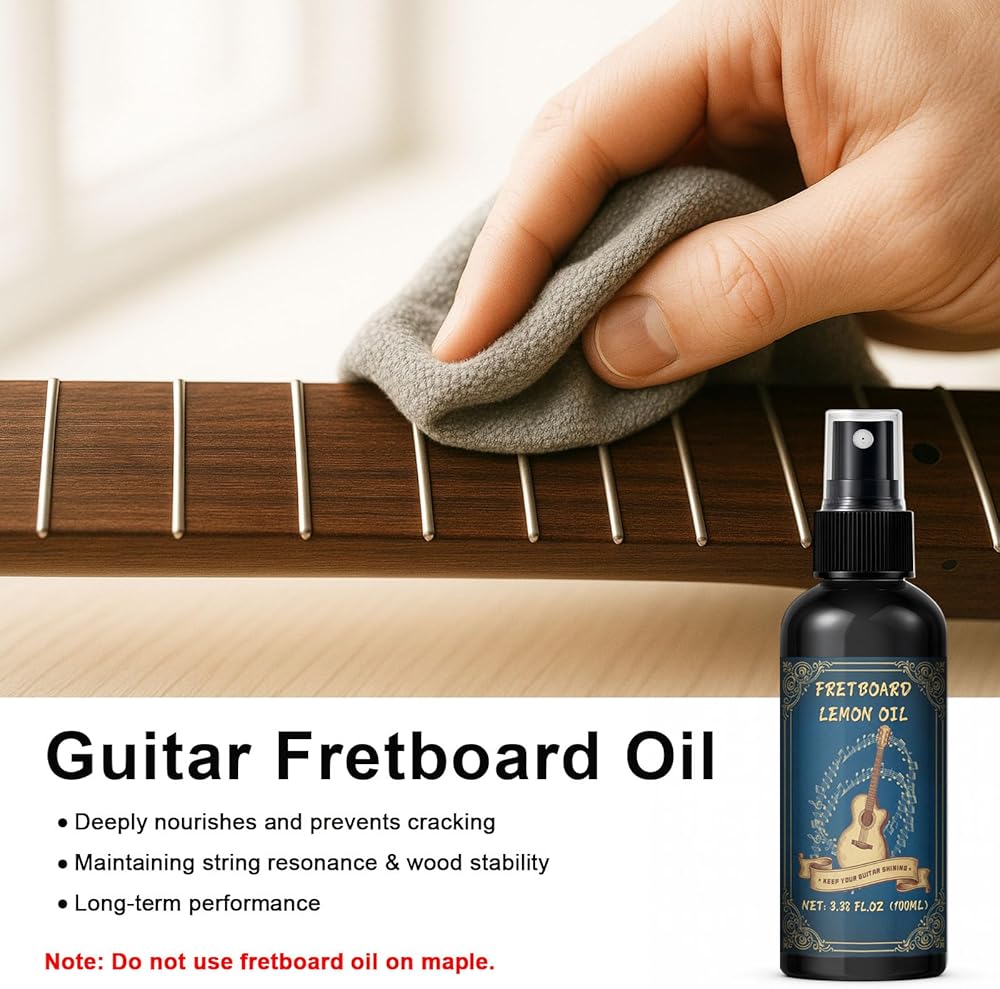 Simplified Steps: Wipe the strings and body with guitar cleaner, use polishing paste to make the frets shine, spray an appropriate amount of guitar fretboard oil and massage it in, and apply guitar oil to enhance the shine. Cleaning and protection can be completed in just a few minutes, making it easy for beginners