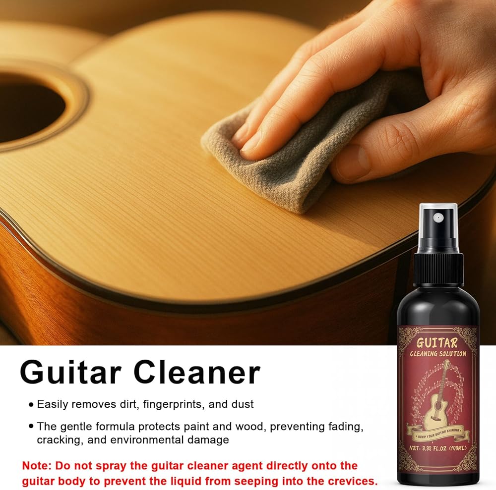Guitar Cleaning Kit: The guitar cleaning maintenance kit easily solves problems like dirt buildup and wear on your guitar, effectively removing dirt, restoring shine, and preventing damage. Electric guitar cleaning kit ensures optimal playing feel and a longer lifespan, keeping your guitar in perfect condition at all times