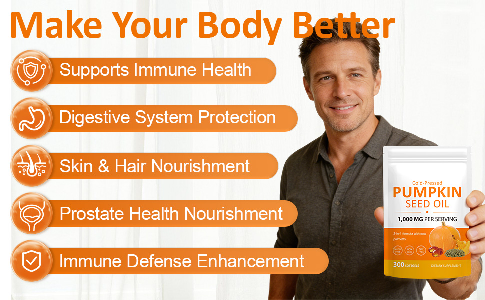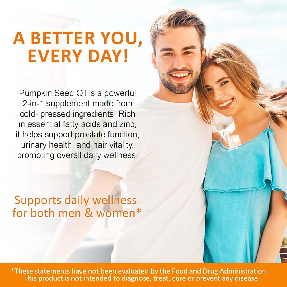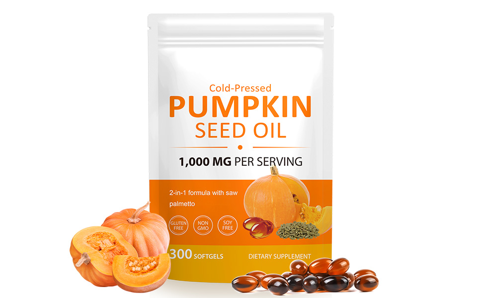 Each pouch offers 300 softgels with a 3 softgel serving size, contains 1,000mg pumpkin seed oil with 23.85mg saw palmetto oil and provides up to a 100-day supply.