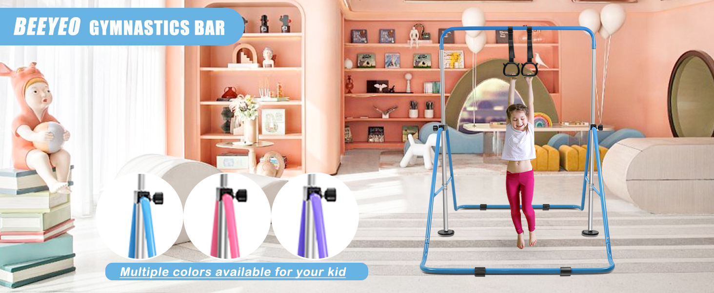 【One-Button Folding】Folding Gymnastic Training Kip Bar requires no tools and can be quickly folded from full size to 17 inches. The kids gymnastics equipment can be easily stored behind the door or under the bed, making it the top choice for indoor training