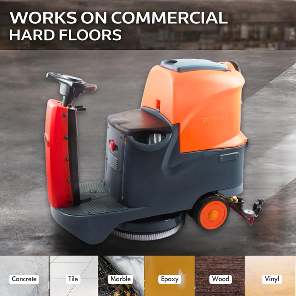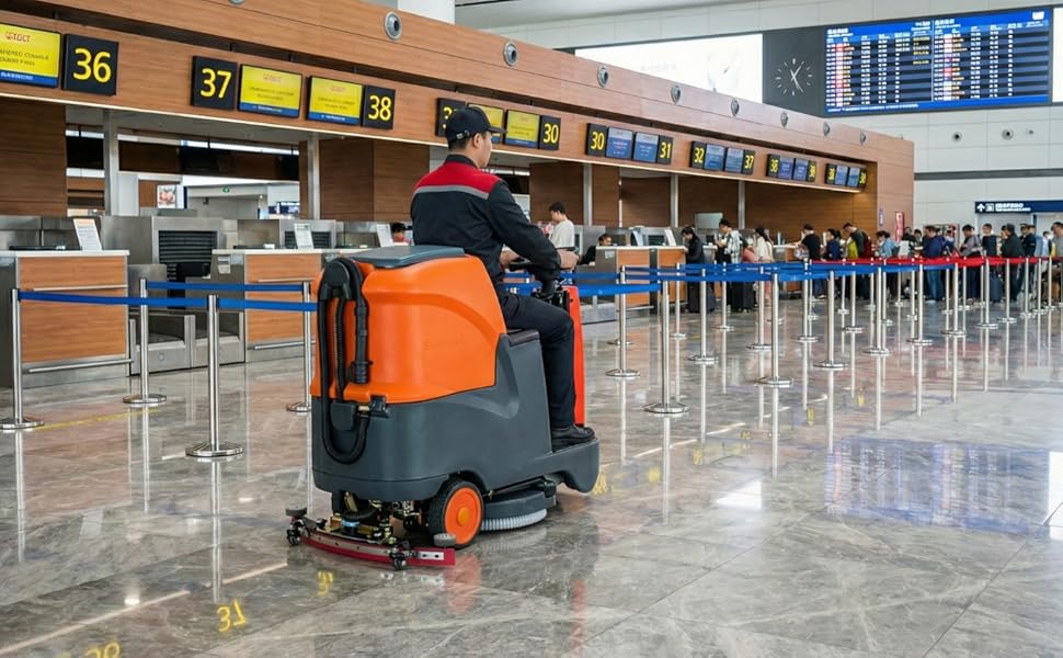 Ride-On Cleaning for Large Commercial Areas: Built for large-area hard floor cleaning, this ride-on floor scrubber helps operators cover more space with less fatigue than a walk-behind machine. Ideal for warehouses, retail stores, schools, factories, hospitals, and other commercial facilities.