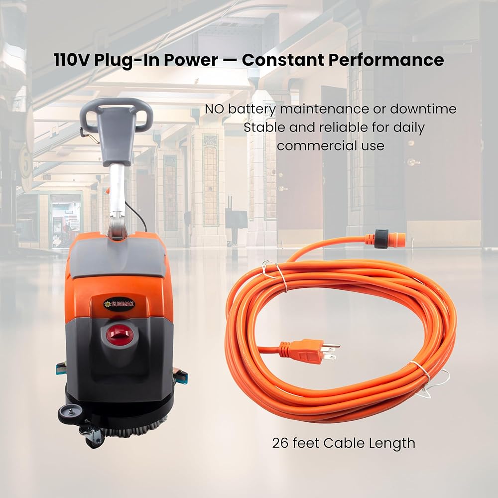 Sunmax RT35AC Electric Walk-Behind Floor Scrubber, 17-Inch Brush, Dual Tank System, Orange/Gray, 110V Commercial Floor Cleaning Machine with 26ft Cable
