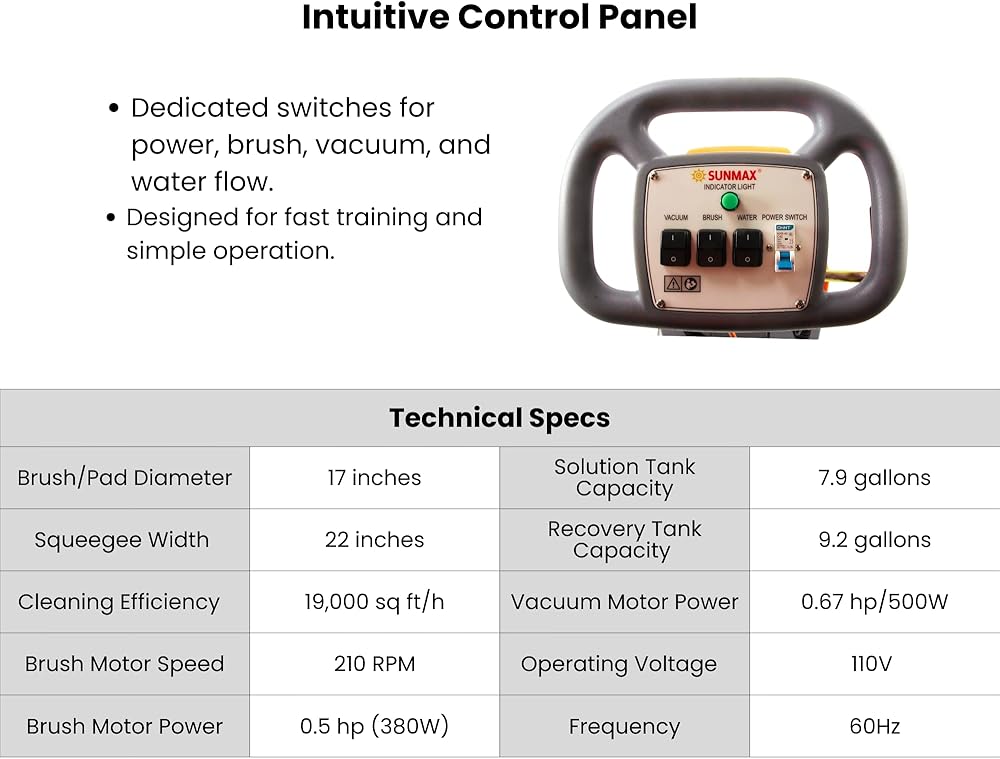 - CLEANING COVERAGE: Achieves efficient cleaning coverage of 19,000 square feet per hour with a 17-inch brush width and 22-inch squeegee