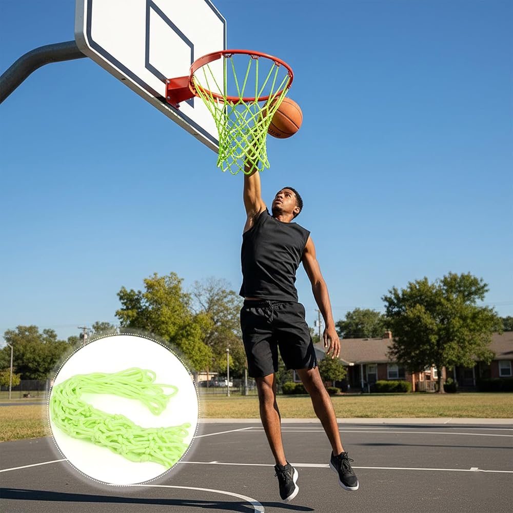 Nightlight Design: This basketball net is made of nightlight material. During the day, it absorbs sunlight and can remain illuminated for several hours. At night, it can emit light without any external light source, allowing you to easily find the basketball hoop