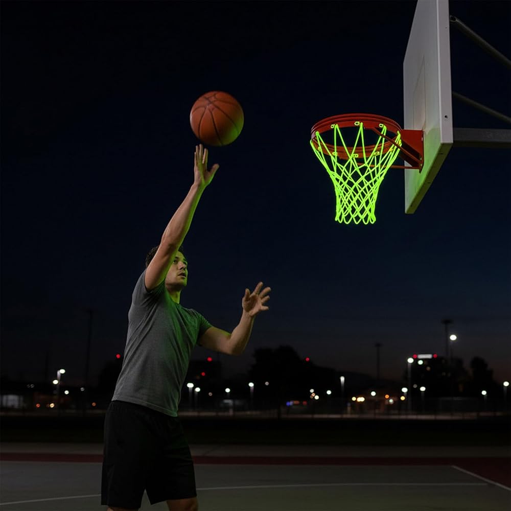 Our glow basketball net adopts a thickened and durable design, with a photoluminescent coating on the surface. After absorbing sufficient sunlight during the day, it can glow at night, allowing you to easily locate the basketball hoop even in the absence of light. It features a 12-hook design for quick and easy installation. Additionally, the anti-whip design prevents the net from knotting with the basketball hoop, allowing you to hear the swish sound when the ball goes through the net. This nightlight basketball net is suitable for people who love sports or basketball