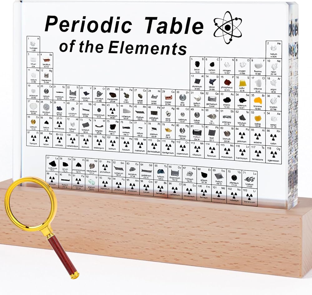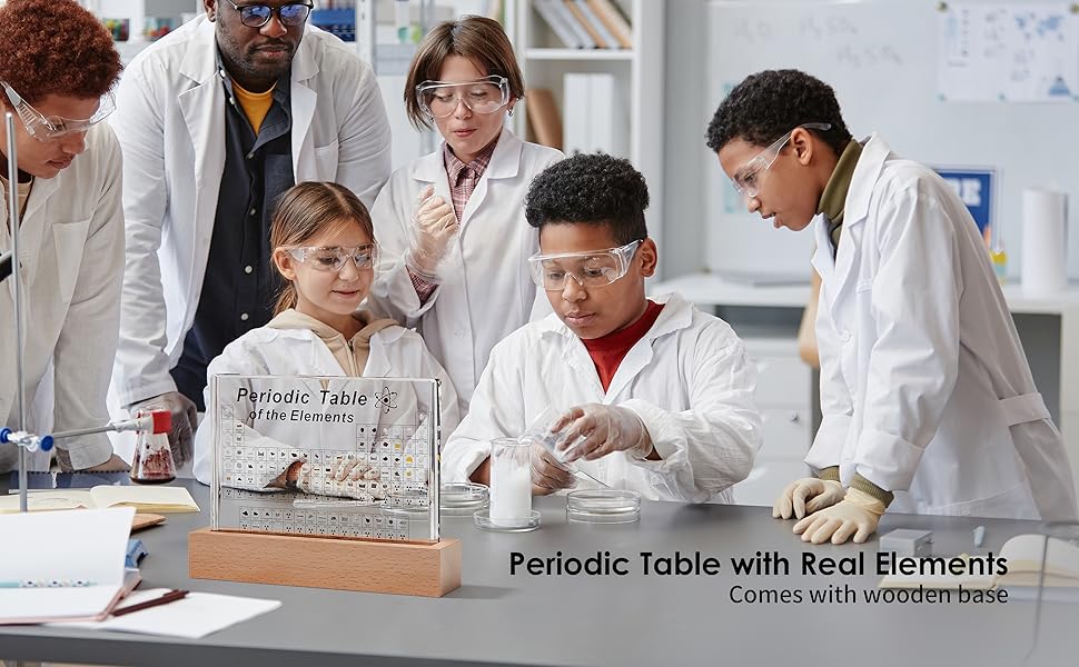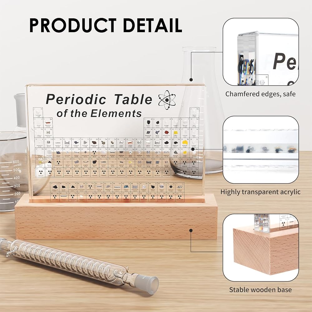 【High-quality Material】Clear periodic table with real elements is made of acrylic. Acrylic is strong, safe, non-toxic, tasteless and durable. It is crystal clear and you can clearly see the 3d element samples inside. The edges is smooth and will not hurt your hand.