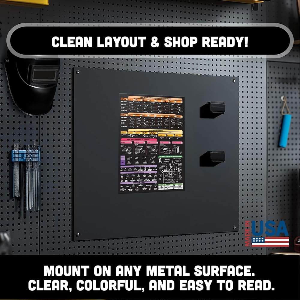 • 🧲 Sticks to Toolboxes & Welders – Heavy-duty magnetic welding chart adheres to metal surfaces like your welding table, toolbox, or wall for instant reference while working.