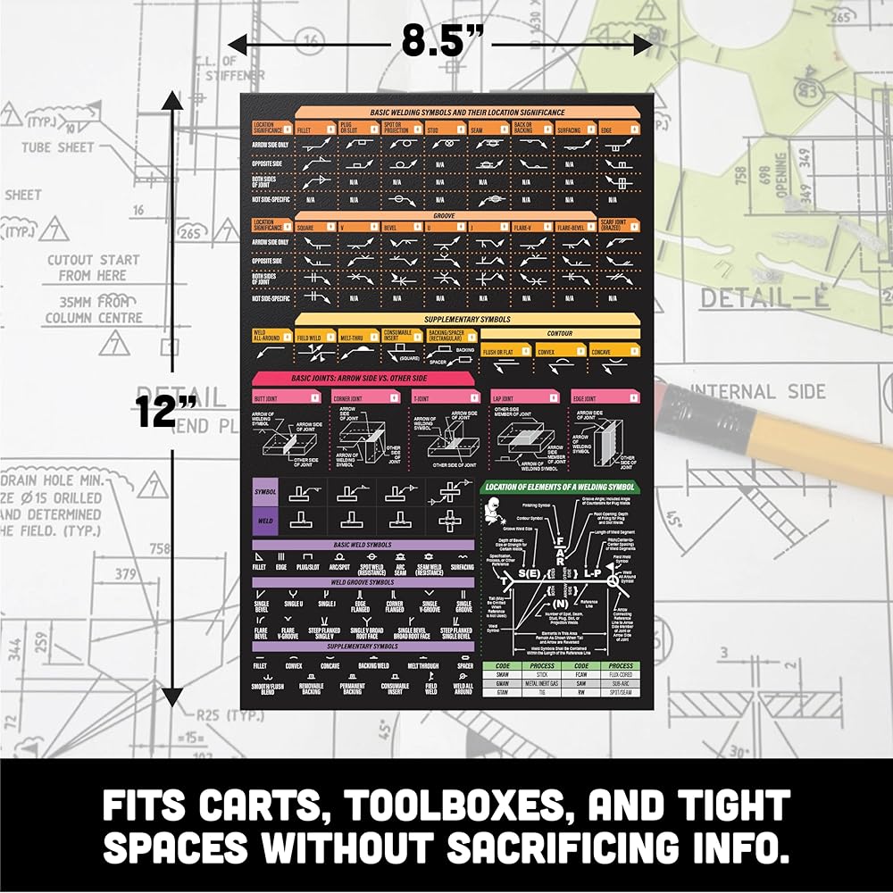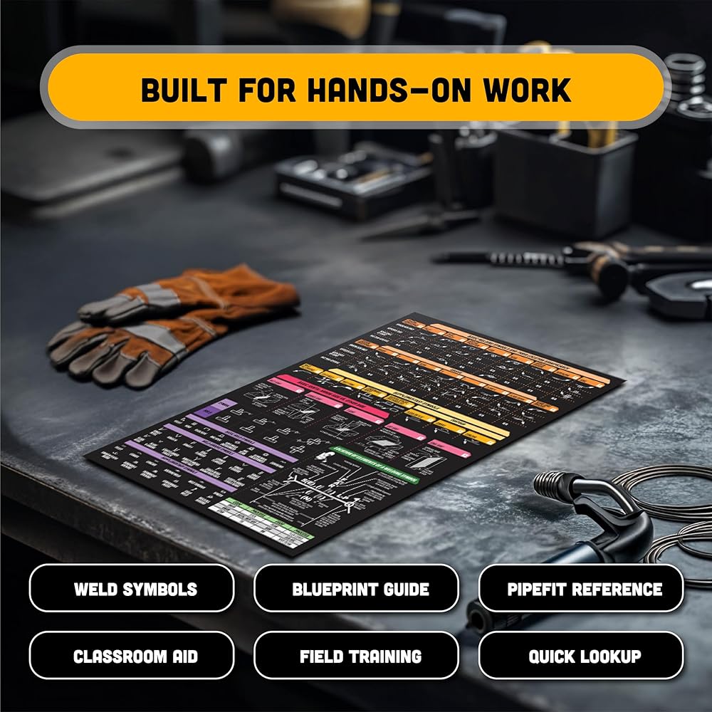 • 🎯 Built for Training & Field Use – A must-have welding guide for beginners, apprentices, or pros needing a quick weld symbol chart for fabrication or classroom settings.