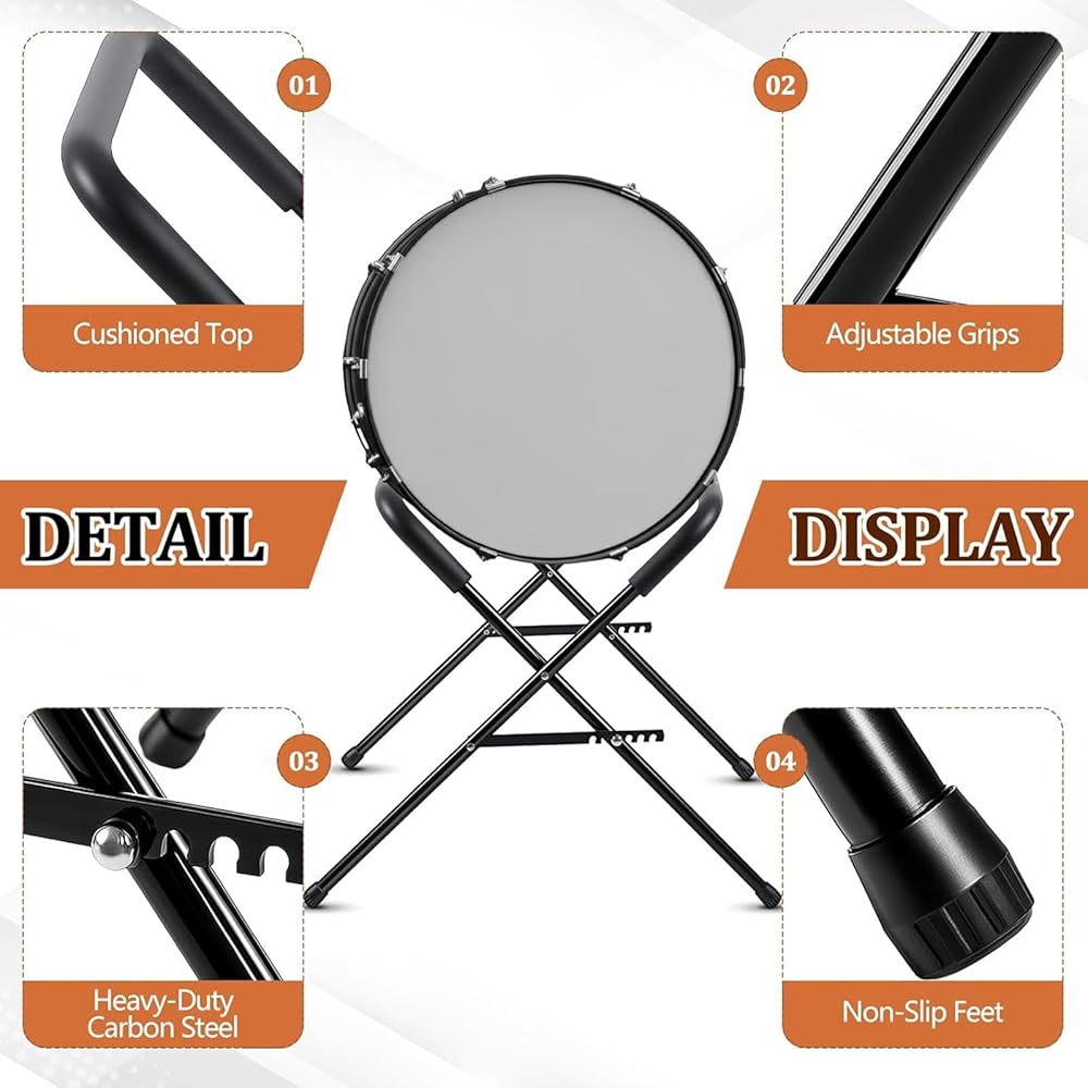 • 【Anti Slip and Reliable】The Instrument Holder is equipped with an anti slip rubber sleeve and a soft foam tube wrapping layer to prevent slippage and protect your drum from scratches.