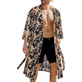DESIGN:Men's long kimono cardigan featuring 3/4 sleeves, Japanese kimono style,open front,loose fit,all over floral print,and super lightweight robe brings you a cool and tropical feel in hot summer.