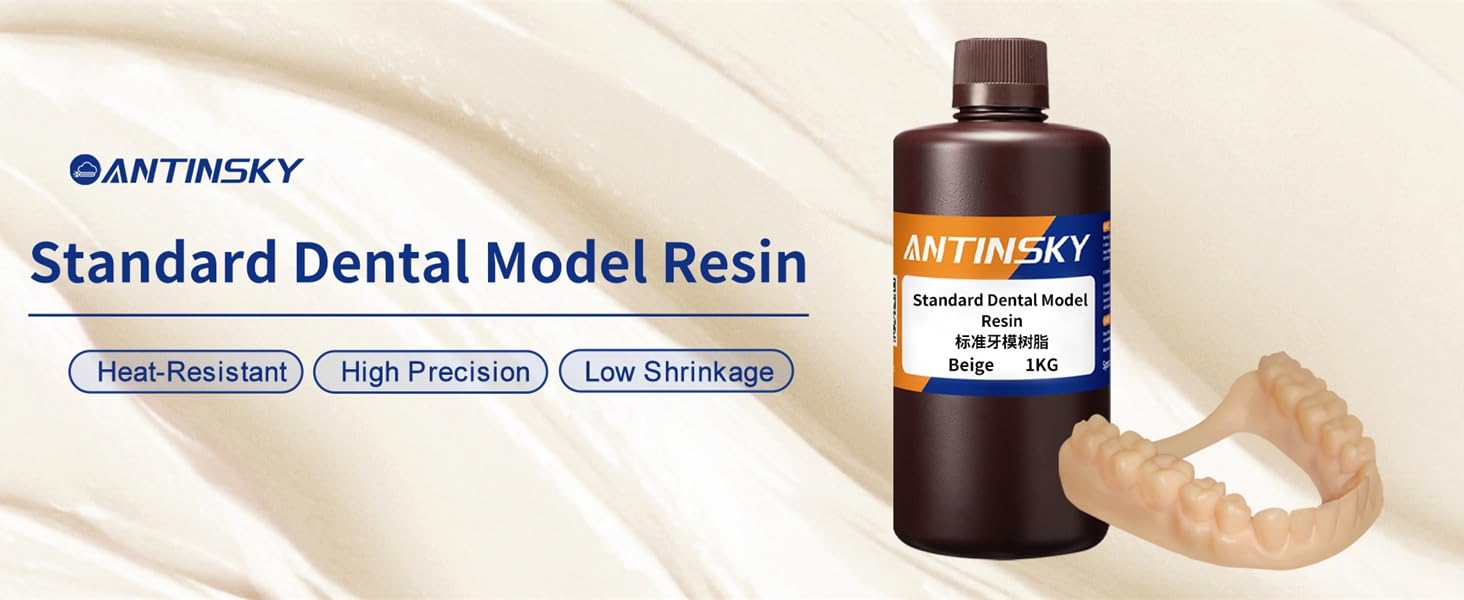Antinsky Standard Dental Model Resin Dental Model Crown and Bridge Model, Orthodontic Model, Implant Model DLP LCD UV-Curing 405nm 3D Resin Printer 100°C Heat Resistance High Precision Beige 1kg