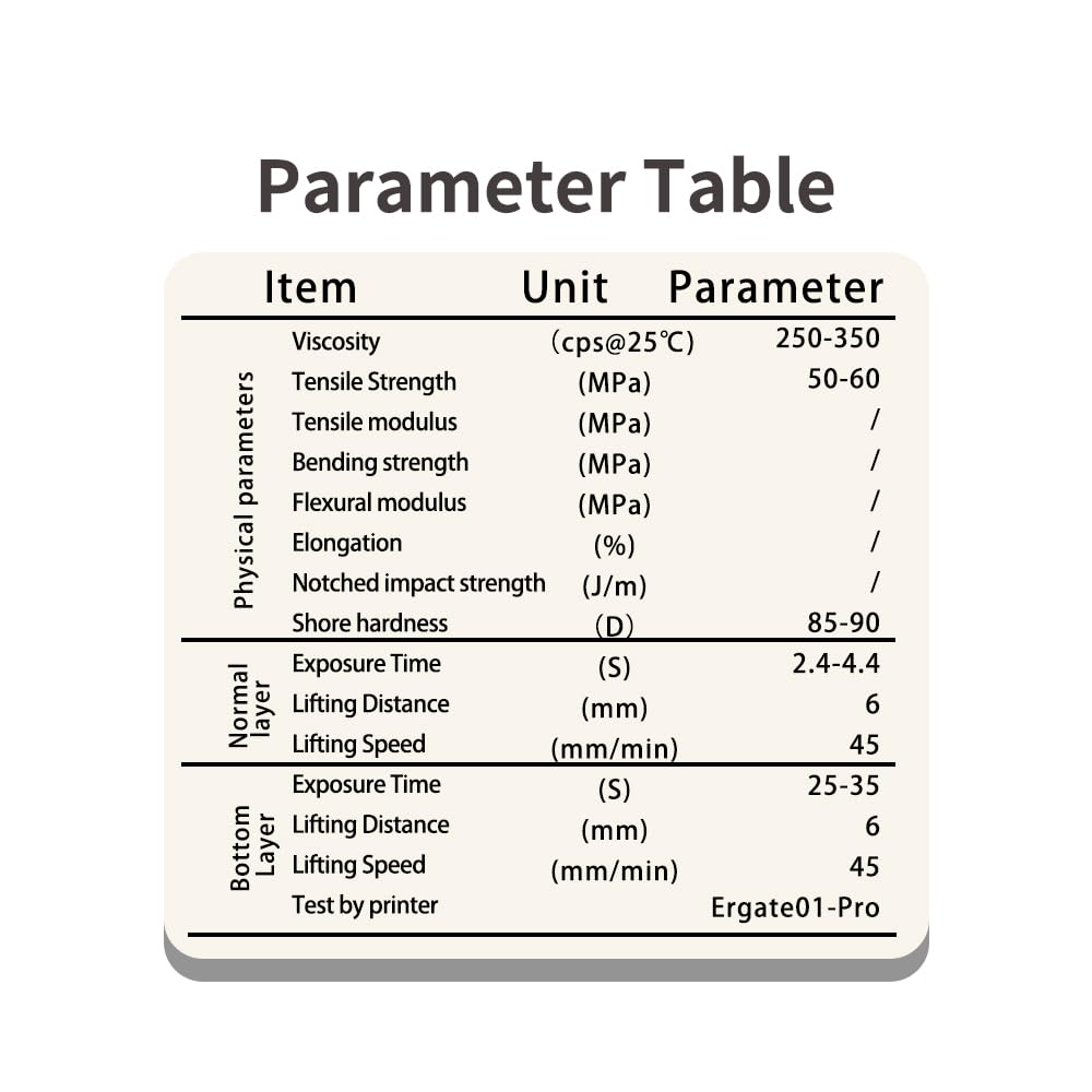 【Excellent physical properties】The cured model has a smooth surface, excellent mechanical strength and hardness, with a hardness of 88D, and can be tapped and polished.It has the characteristics of long-term storage and corrosion resistance.