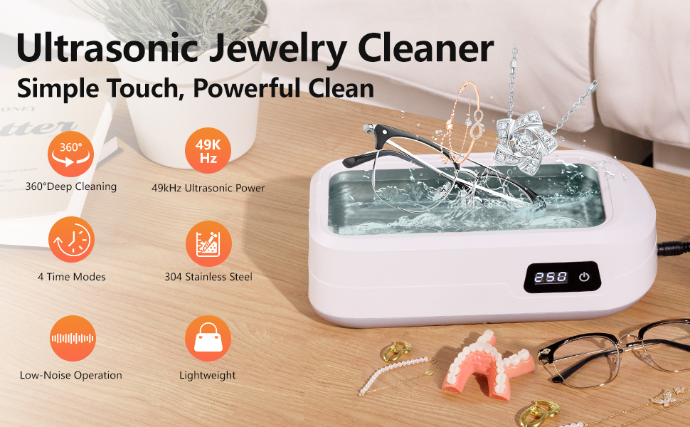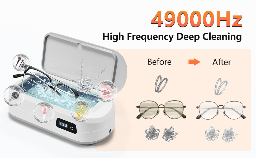 【Waterproof & Multi-Use Design】Equipped with IPX6 waterproof protection, this jewelry cleaner is perfect for daily use on jewelry, glasses, rings, and watch straps. Pair it with cleaning solution for optimal results and a brilliant finish on all your valuables.