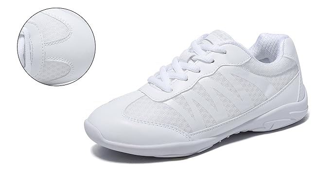 Light and Breathable: Lightweight cheerleading shoes allow you to move easily, quickly and confidently. Air mesh knitted upper and comfortable lining enhance ventilation to keep cool and comfortable during sports and performances