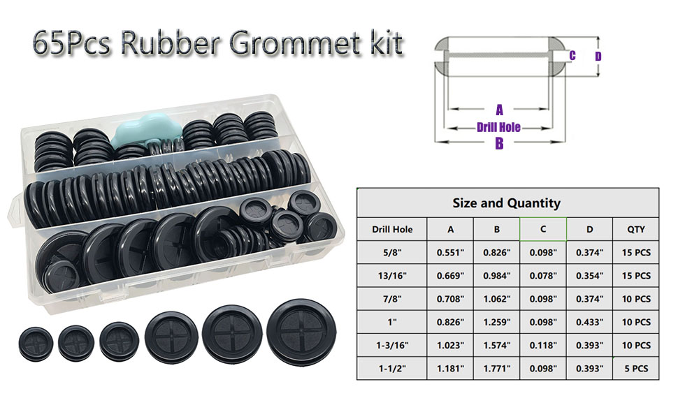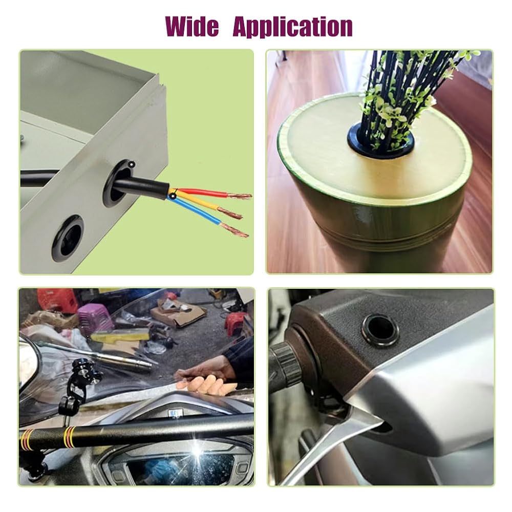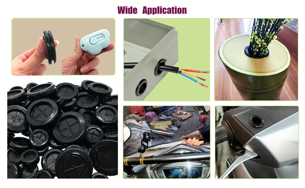 Easy to use, design for easy installation,solid rubber grommets can be used to plug holes that are no longer in use, and if you use a knife to cut through the center of the grommet, you can easily pass wires through the holes to protect the wires and cables.
