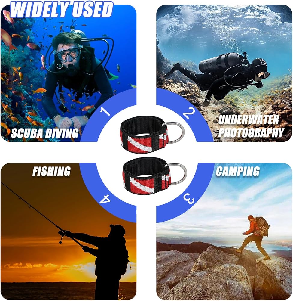 STAINLESS STEEL D-RING--- The wristband is equipped with a 316 stainless steel D-ring, which is durable, rust-resistant, and resistant to seawater corrosion. It can easily hold various diving equipment, such as diving flashlights, diving compasses, and underwater cameras. It is compatible with various diving clips and ropes, allowing you to dive with confidence and capture every beautiful scene underwater
