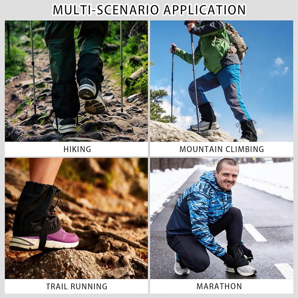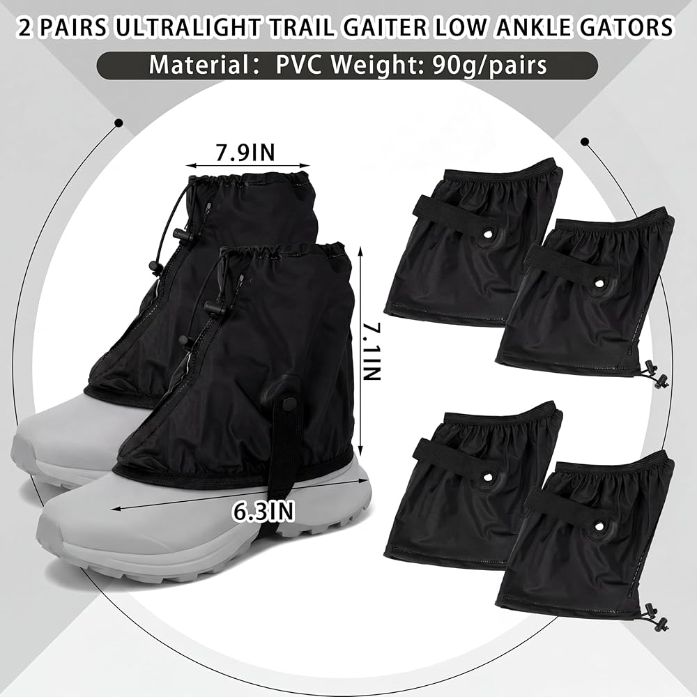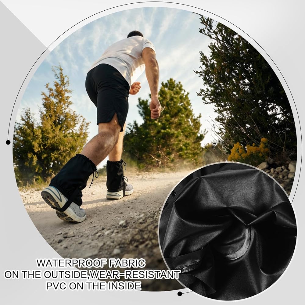 These gaiters for hiking are built to last with high-quality, lightweight PVC material. The black PVC not only enhances their wear resistance but also makes them easy to maintain, ensuring they remain a staple in your running kit over countless miles.