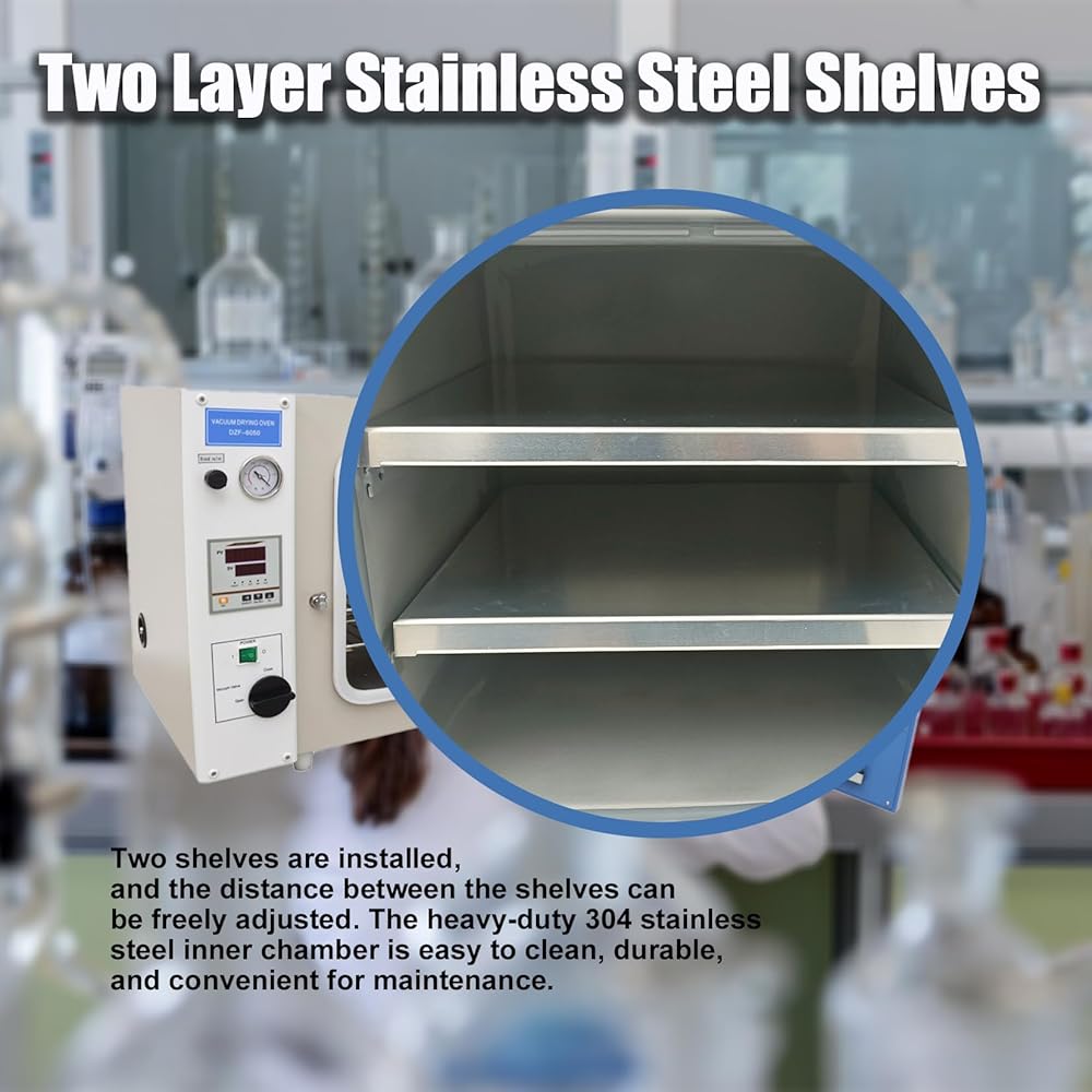 Vacuum drying boxes are widely used in biochemistry, chemical and pharmaceutical, medical and health, agricultural scientific research, environmental protection and other research and application fields, for powder drying, baking and disinfection and sterilization of all kinds of glass containers. It is especially suitable for rapid and efficient drying of heat-sensitive, easily decomposed, easily oxidized substances and complex components.