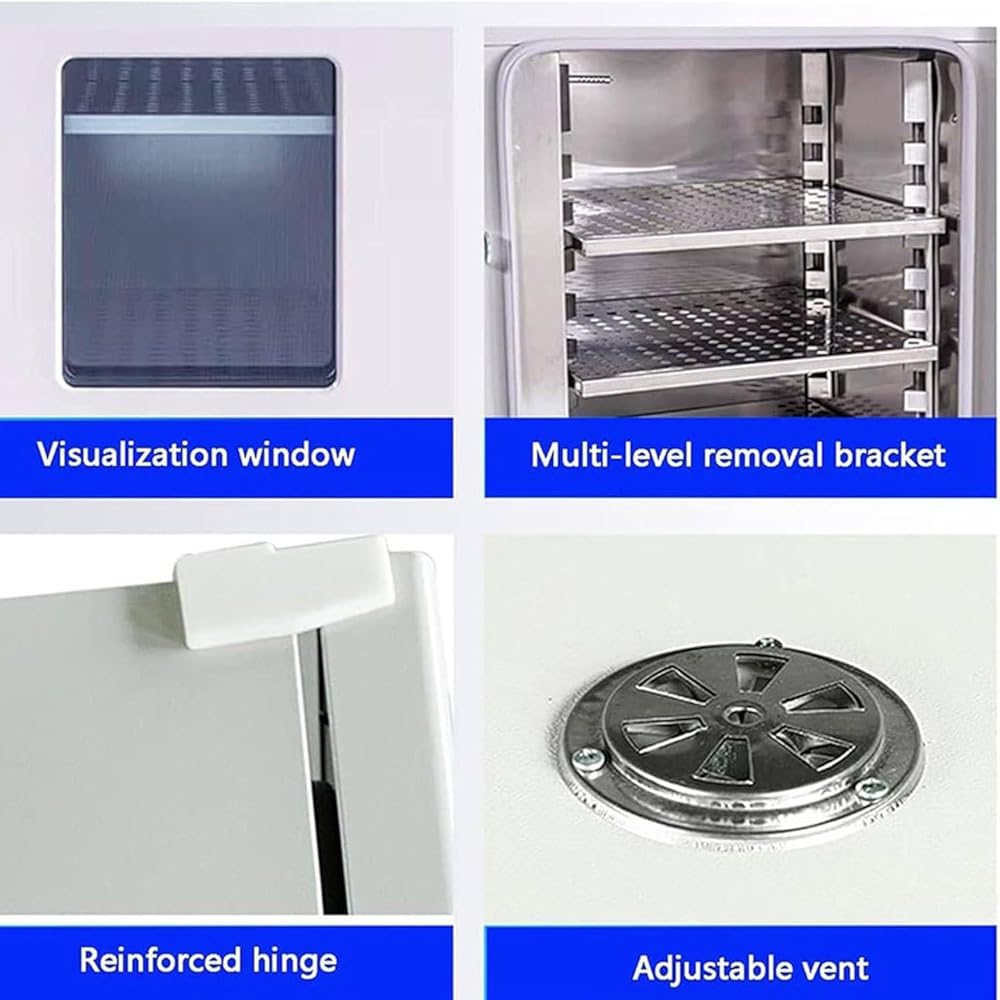 • 【Precise Temperature Control】Intelligent digital display laboratory blast drying oven can control the temperature from 50-300°C, and the hot air circulates inside to maintain a constant temperature. PID ligent temperature controller can accurately control the temperature, and simultaneously displays the set temperature, real-time temperature, time, wind speed, heating status.