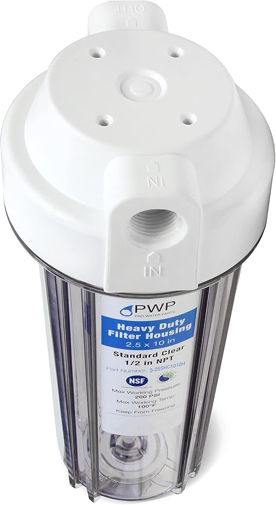 - A standard 10-inch clear heavy-duty housing Designed with 1/2 inch ports